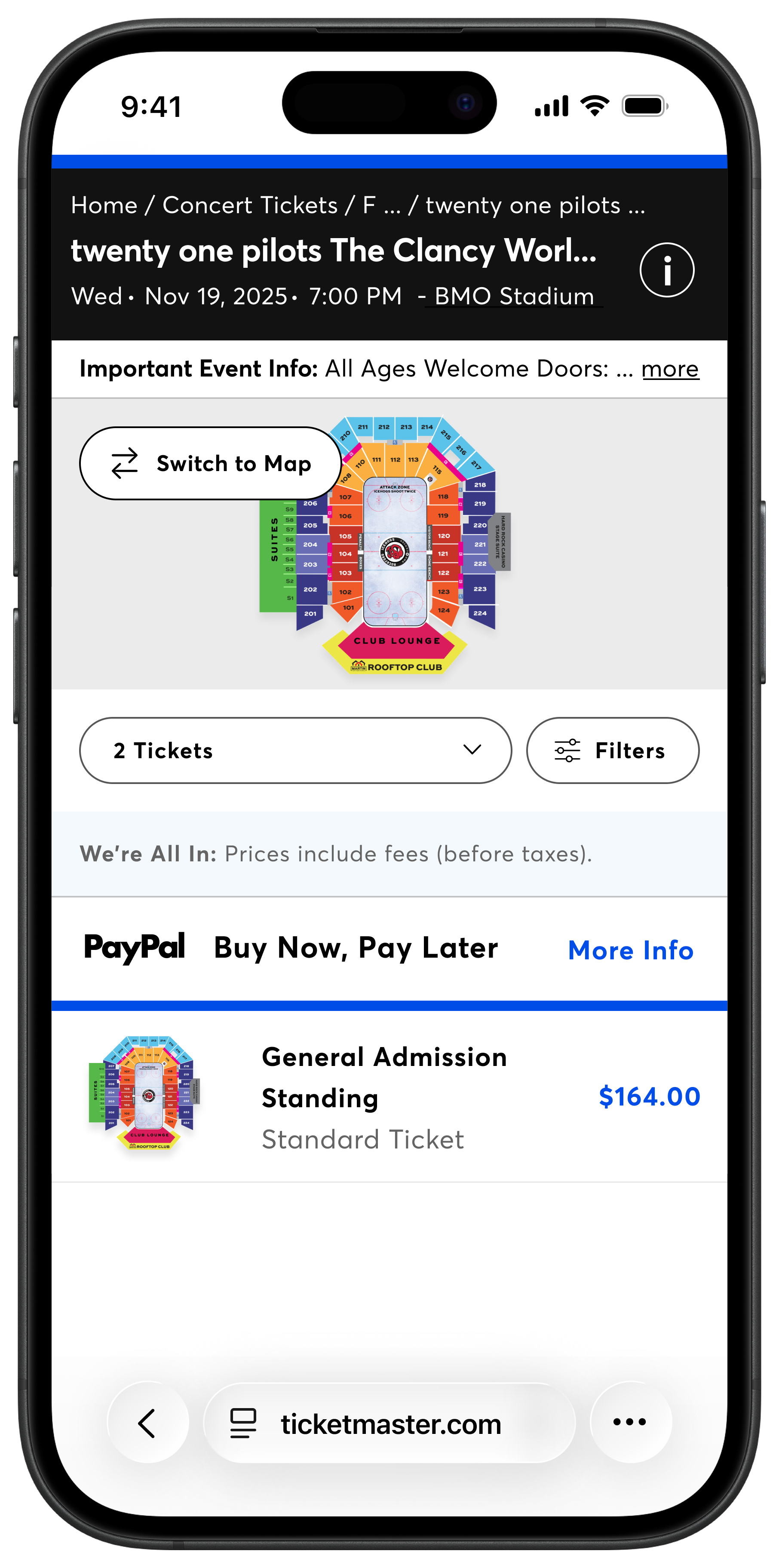 Below the concert information is a button that takes you to an external ticket-selling website.