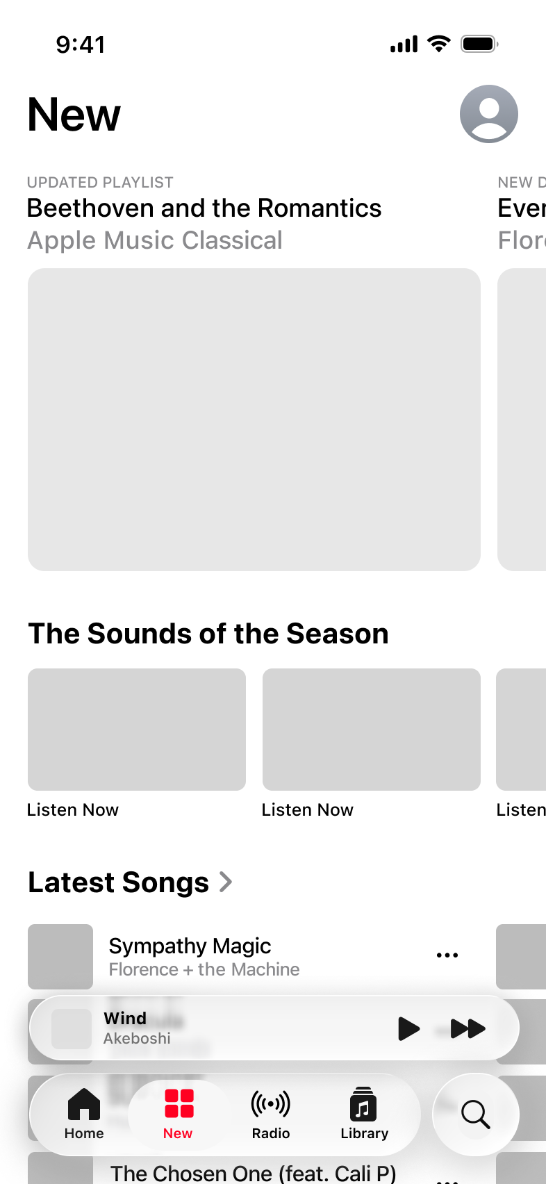 Current screenshots of Apple Music’s ‘New’ page.