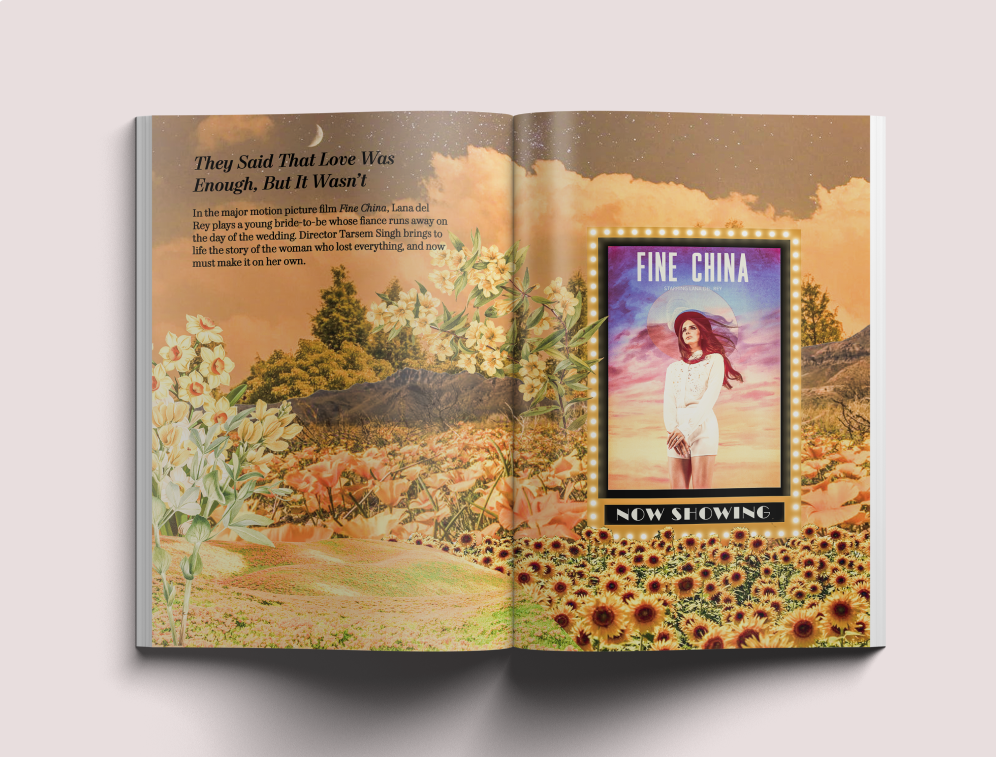 The second exploration uses Lana’s tender and heartbreaking song Fine China, and turns it into a Hollywood film. The song is about a bride whose groom leaves her on the day of their wedding. Thus, the movie is the story behind that.